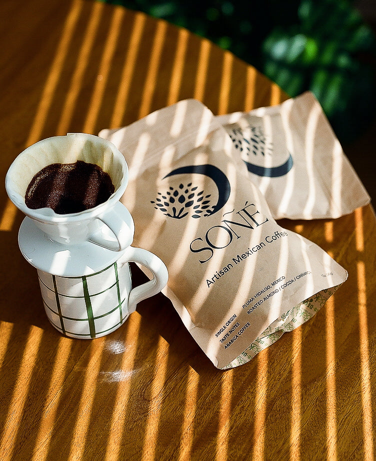Indulge in the heritage of Mexican coffee with Pluma Coffee from Café Soñé. Sourced from the Sierra Madre mountains in Pluma Hidalgo, Oaxaca, at an altitude of 1,800 meters above sea level, this single-origin Arabica coffee brings a unique, smooth profile to every cup.